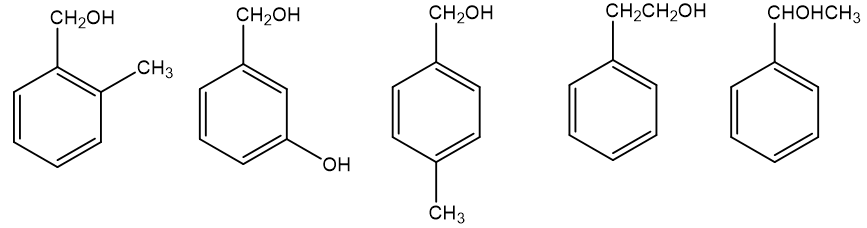 Trong các đồng phân cấu tạo ứng với công thức phân tử C8H10O (đều là dẫn xuất của benzene) có bao nhiêu chất tác dụng được với Na, không tác dụng được với NaOH