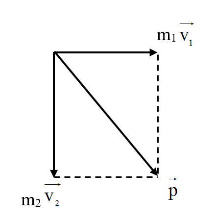\(\overrightarrow {{v_1}} \bot \overrightarrow {{v_2}} \Rightarrow p = \sqrt {{{({m_1}{v_1})}^2} + {{({m_2}{v_2})}^2}} = \sqrt {{{({{2.10}^{ – 3}}.6)}^2} + {{({{3.10}^{ – 3}}.4)}^2}} \approx 0,017kg.m/s\)