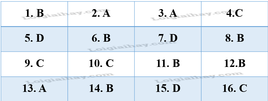 Câu 15. Chọn câu trả lời đúng.
