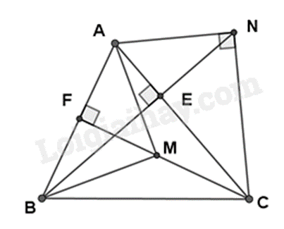 Mà AM = AN (gt) suy ra \(AM = AB.AF\) hay \(\frac{{AM}}{{AF}} = \frac{{AB}}{{AM}}\).