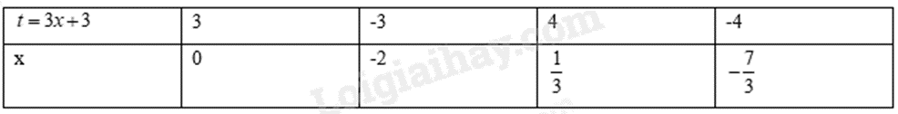 Thay \(t = 3x + 3\) ta tìm đc x.