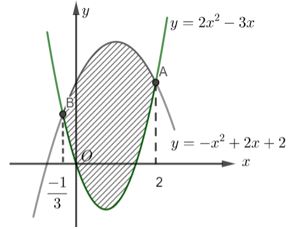 Sử dụng công thức tính diện tích hình phẳng giới hạn bởi đồ thị hàm số \(y = f\left( x \right)\), trục hoành, đường thẳng \(x = a,x = b\) là: \(S = \int\limits_a^b {\left| {f\left( x \right)} \right|dx} \)