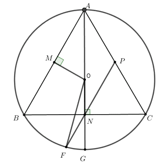 Bài 4. (2,5 điểm). Cho tam giác đều ABC nội tiếp trong đường tròn tâm O. Gọi M, N, P lần lượt là trung điểm của AB, BC, CA.