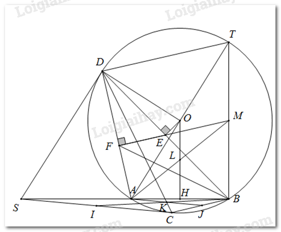 4) Gọi E là trung điểm của đoạn thẳng BD và F là hình chiếu vuông góc của điểm E trên đường thẳng AD. Chứng minh rằng, khi điểm S thay đổi trên tia đối của tia AB thì điểm F luôn thuộc một đường tròn cố định.