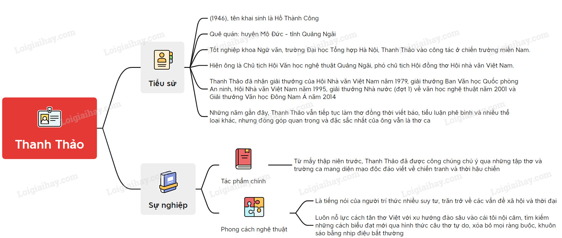 Sơ đồ tư duy về tác giả Thanh Thảo: