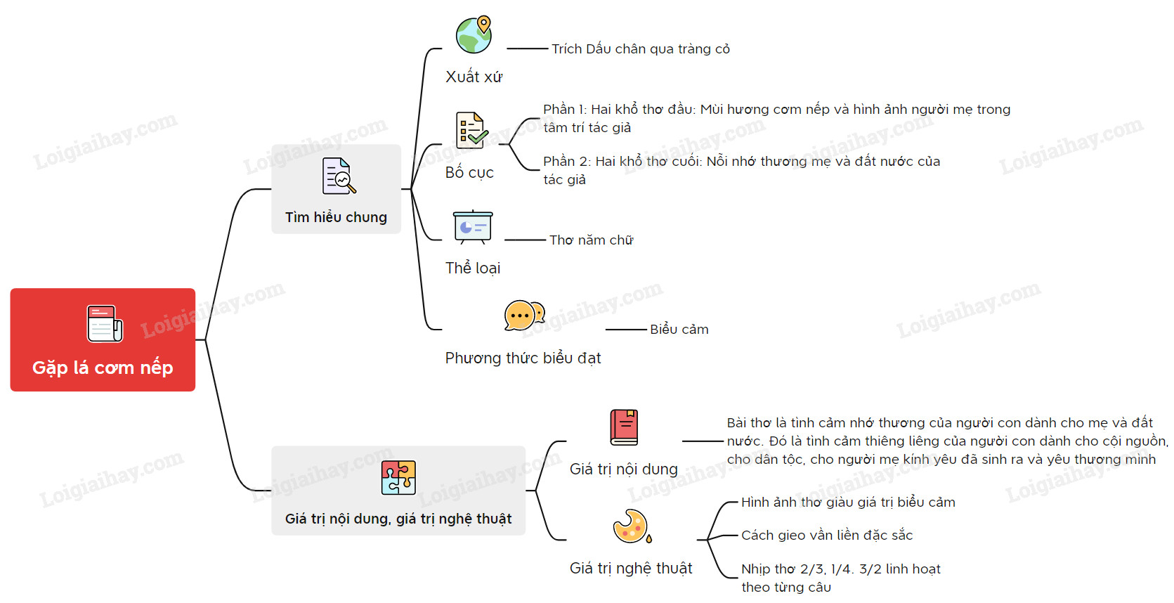 Sơ đồ tư duy về văn bản Gặp lá cơm nếp: