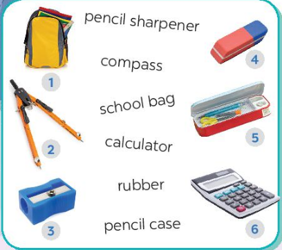 4. Match the words with the school things. Then listen and repeat.