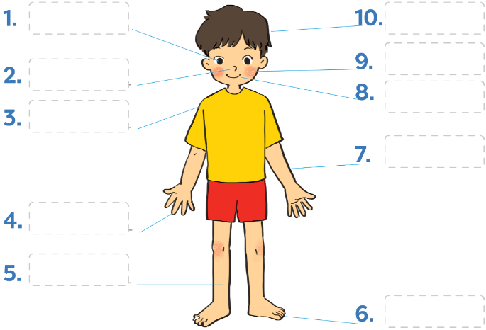 3. Label the body parts with the words in the box.