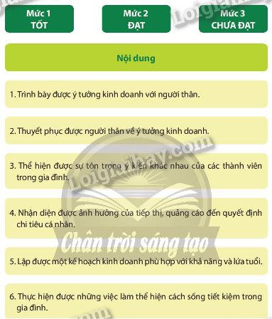 Lựa chọn mức độ đánh giá phù hợp cho mỗi nội dung.