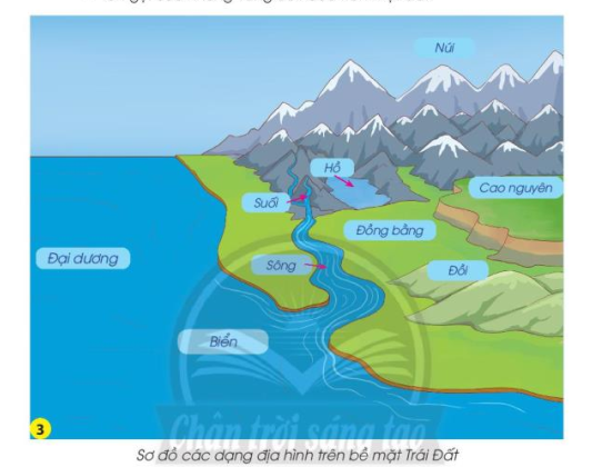 – Các dạng địa hình trên Trái Đất: Núi, cao nguyên, đồng bằng, đồi, hồ, sông, suối, biển, đại dương.