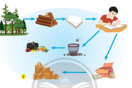 Quan sát sơ đồ sau và cho biết giấy được sản xuất từ đâu? Sử dụng giấy thế nào là hợp lý.