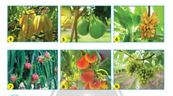 Nêu tên và đặc điểm của một số quả trong các hình sau. So sánh hình dạng, kích thước, màu sắc của các loại quả đó.