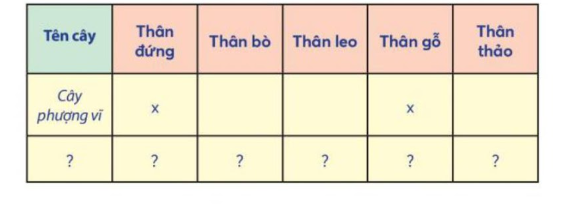 Kể tên một số loài cây mà em biết và hoàn thành bảng theo gợi ý sau.
