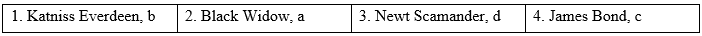 (Nhìn vào những bức hình của những nhân vật trong các bộ phim nổi tiếng. Nối các bức ảnh với tên bên dưới. Những nhân vật đó xuất hiện trong bộ phim nào? Bạn có biết những diễn viên trên là ai không?)