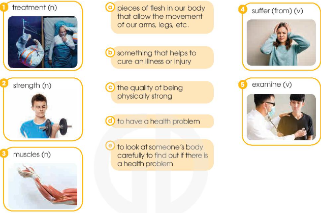 3 – a: muscles (n) = pieces of flesh in our body that allow the movement of our arms, legs, etc.