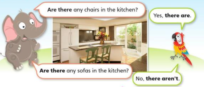 Are there any chairs in the kitchen? (Có cái ghế nào trong nhà bếp không?)