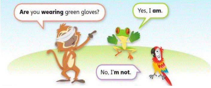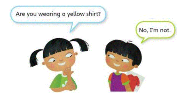 wearing a yellow shirt?”. Nếu sai thì trả lời “No, I’m not.”, đáp án đúng thì trả lời “Yes, I am.”