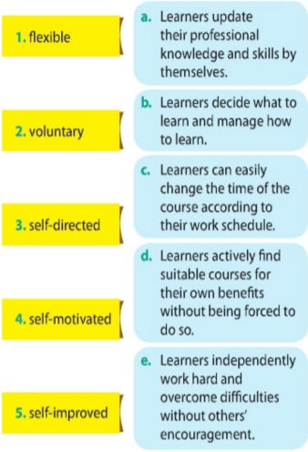 1. Work in pairs. Match the characteristics of lifelong learning (1-5) with their example actions (a-e).