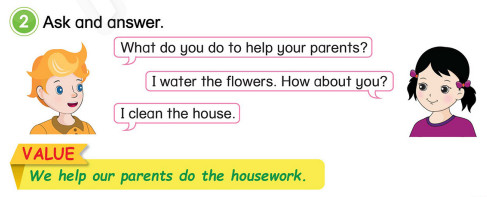 (Giá trị: Chúng tôi giúp bố mẹ làm công việc nhà.)
