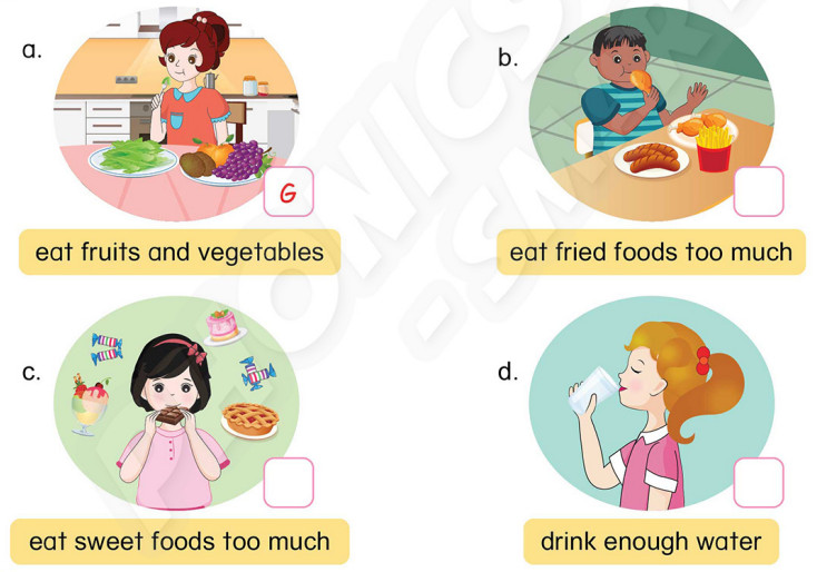 (Viết chữ G (thói quen ăn uống tốt cho sức khỏe) hoặc B (thói quen ăn uống có hại cho sức khỏe).