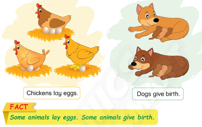 (Một số con vật đẻ trứng. Một số con vật đẻ con.)