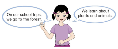 (Trong chuyến đi thực tế, chúng tớ đi vào rừng.)
