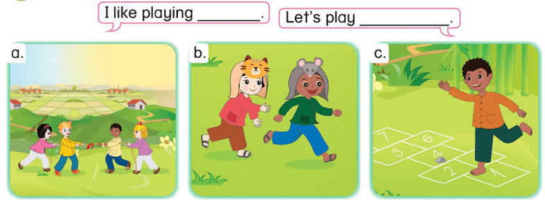 c. I like playing hopscotch. (Tôi thích chơi trò chơi nhảy ô lò cò.)