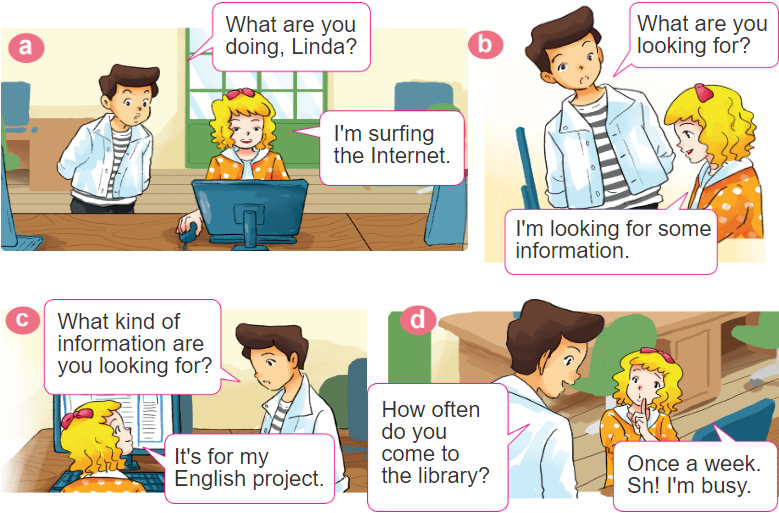 How often do you come to the library? Bạn thường đến thư viện không? What kind of information are you looking for? Loại thông tin bạn đang tìm kiếm là gì?