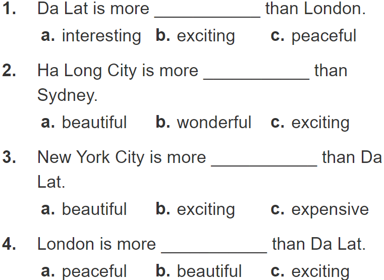 Tony: Well, they are both very nice. But I think Sydney is more beautiful (5) than Da Nang.