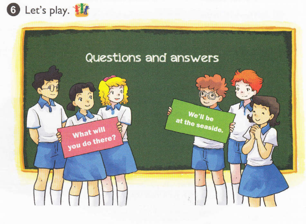(Bạn sẽ làm gì? ⇒ Mình không biết. Có thể mình sẽ xây lâu đài cát trên bãi biển.)