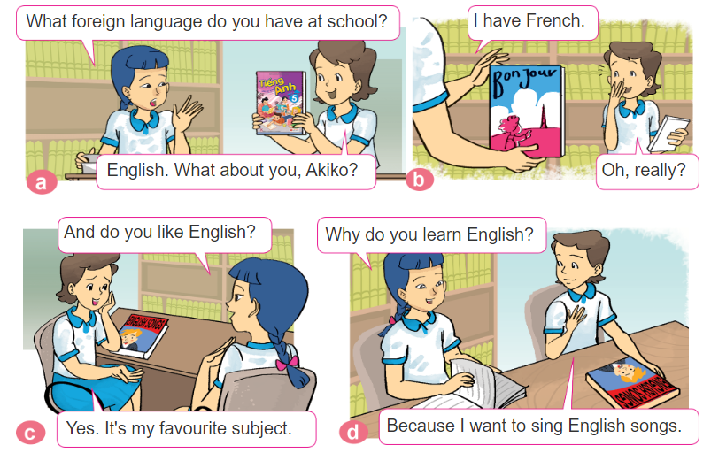 (Ngoại ngữ bạn học ở trường là gì? – Tiếng Anh. Còn bạn thì sao Akiko?)