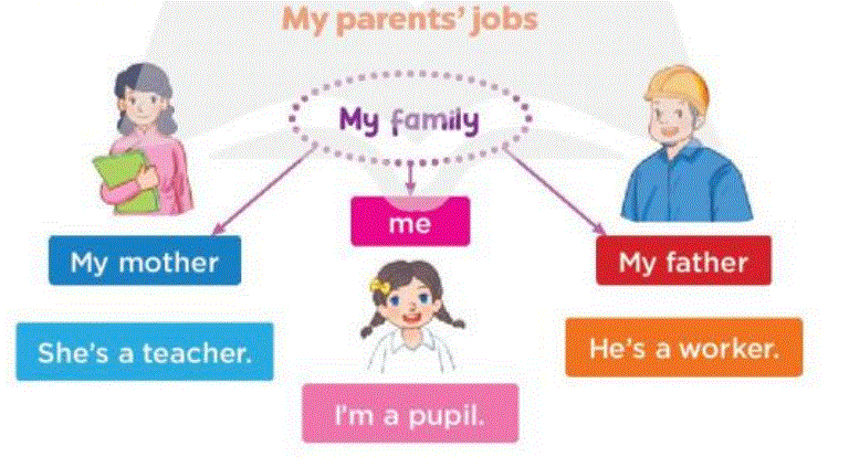 Làm thành một sơ đồ về nghề nghiệp của bố mẹ bạn và bạn. Nói cho các bạn nghe về gia đình của bạn.