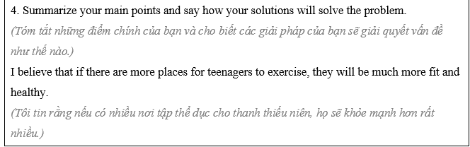 (Bây giờ, hãy chọn vấn đề lớn nhất mà bạn đã thảo luận. Làm theo cặp: Thảo luận các điểm trong bảng dưới đây và viết ra ý kiến của riêng bạn.)