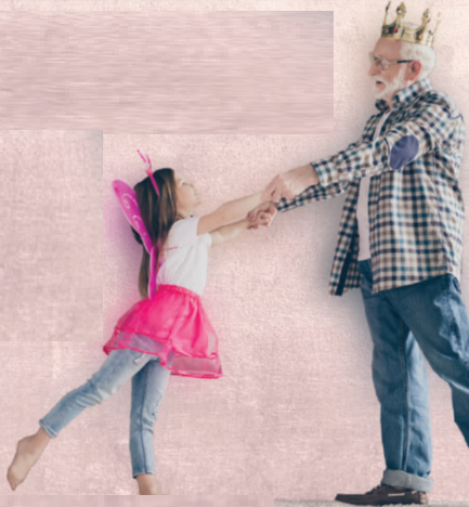 (Cô bé đang thể hiện niệm vui cũng như tình yêu thương của mình với ông của cô ấy.)