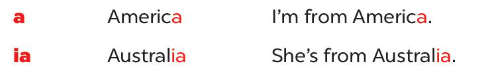 She’s from Australia. (Cô ấy đến từ nước Úc.)