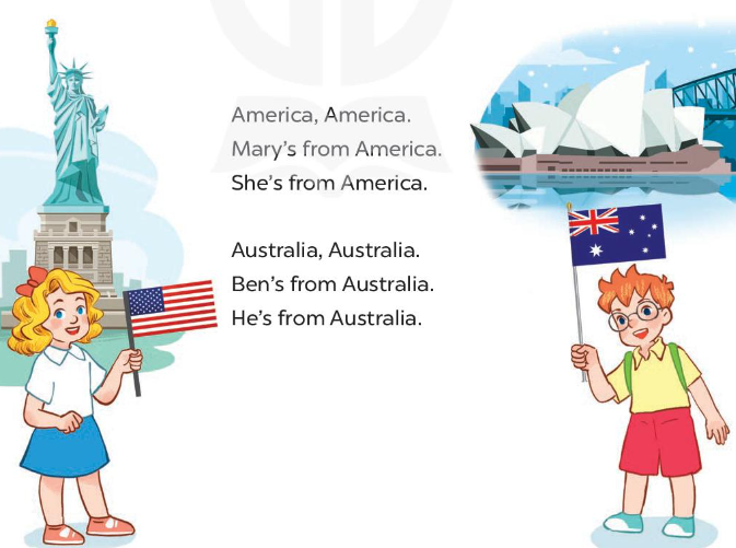 4. Laura is from America. (Laura đến từ Mĩ.)