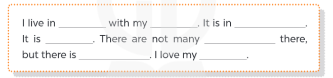 I live in a small flat with my parents. It is in Le Lai street. The street is very busy. At the weekend, I visit my grandparents. They live in a big house with a beautiful garden in a village. The village is quiet and beautiful.