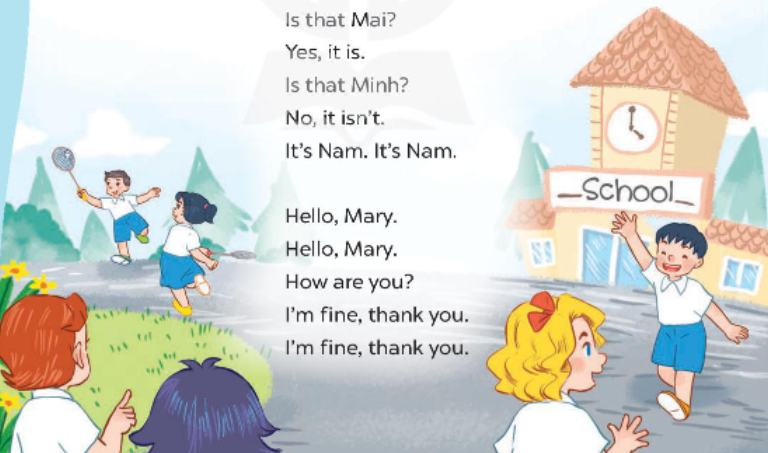 3 – b: That’s my teacher, Ms Hoa. (Đây là cô giáo của tôi, cô Hoa.)