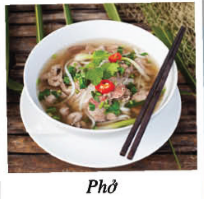 Có rất nhiều món ăn phổ biến ở Việt Nam và bạn sẽ thấy cơm hoặc mì ở chiếm đa số trong đó. Phở là một món ăn nổi tiếng của Việt Nam. Người ta chế biến nó với thịt gà hoặc thịt bò. Họ cho hành tây và rau thơm vào đó. Nó có mùi vị tuyệt vời.