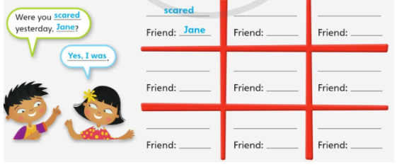 A: Were you scared yesterday, Jane? (Hôm qua cậu có sợ không?)