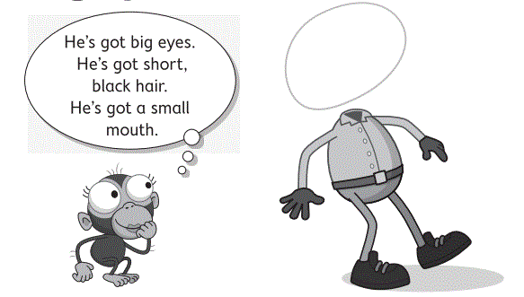 He’s got short, black hair. (Anh ấy có mái tóc đen, ngắn.)