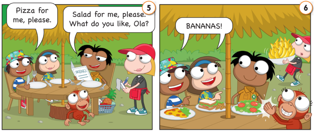 Chú Dan: Làm ơn cho tôi salad. Cháu thích gì, Ola?