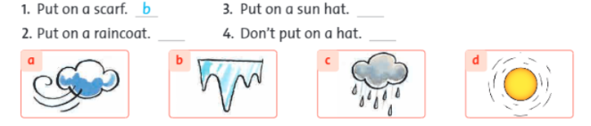 2 – c. Put on a raincoat. (Mặc áo mưa vào.)