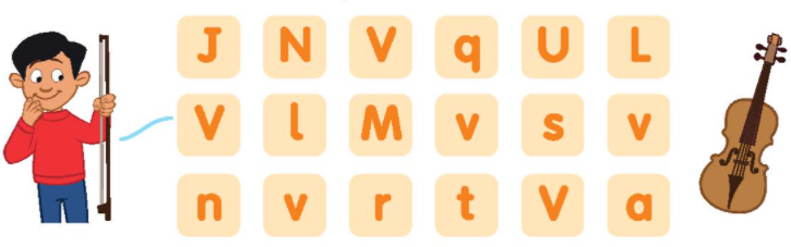 (Nối các chữ cái Vv. Giúp Victor tìm cây đàn vĩ cầm.)