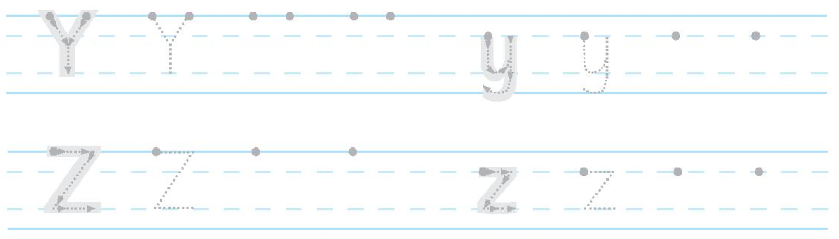 1. Trace and write the letters Yy and Zz.