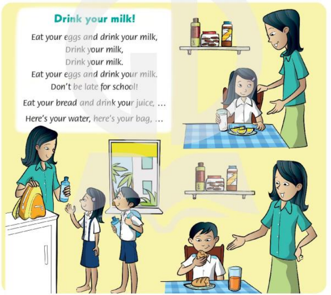 Eat your bread and drink your juice, …(Ăn bánh mì và uống nước ép, …)