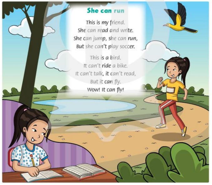 She can read and write. (Cô ấy có thể đọc và viết.)