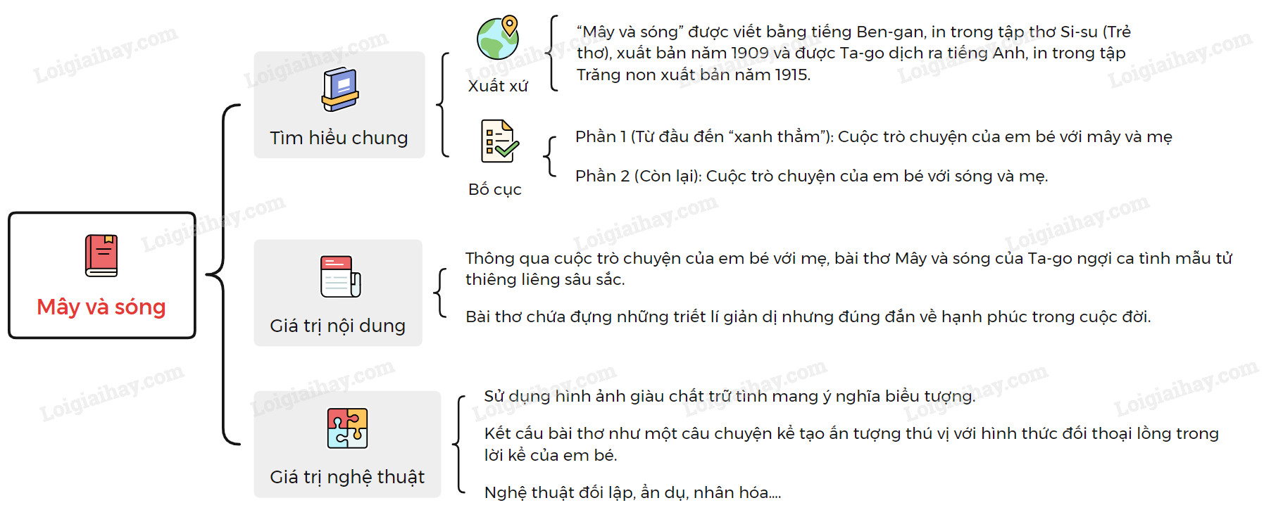 Sơ đồ tư duy bài thơ Mây và sóng: