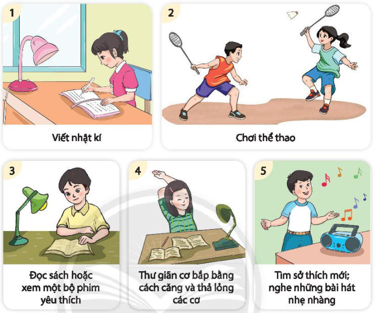 Thực hành giải trí, thư giãn khi em bị căng thẳng theo những gợi ý sau. Chia sẻ những cách nghỉ ngơi, thư giãn khác mà em đã thực hiện.