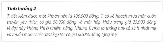 Nếu em là H. em sẽ quyết định chi tiêu như thế nào. Vì sao. Nếu là T. em sẽ lựa chọn mua những món đồ nào. Vì sao. Nếu là N em sẽ chọn khoản chi tiêu nào. Vì sao.